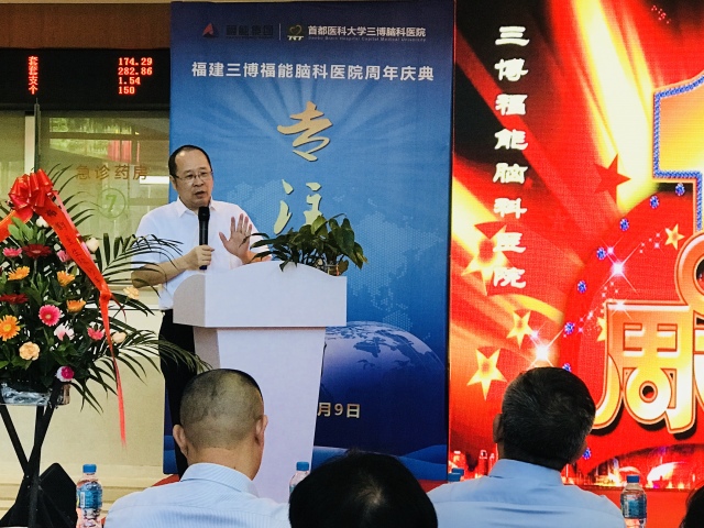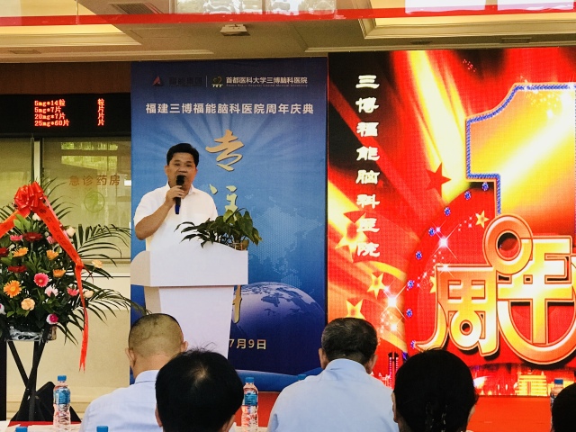 福建三博福能脑科医院林志雄院长为医院一周年庆典活动做开幕致辞并就医院一年来的回顾及未来的发展做出了重要讲话。