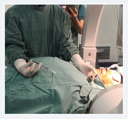 究竟是什么样的李阿姨折磨了这么多年的“天下第一痛”这么快就解决了呢?原来,林志雄主任为李阿姨设计了一种新的手术方式,经皮穿刺三叉神经微球囊压迫术。李阿姨在全麻无痛下,经口角外侧穿刺半月节,通过一个鞘管在X线透视监视下,将一个微球囊导入Meckle’s腔的三叉神经的半月节,然后缓慢注入对比造影剂充盈球囊,压迫时间2分钟。从而使三叉神经痛觉纤维失活,达到治疗三叉神经痛的目标。